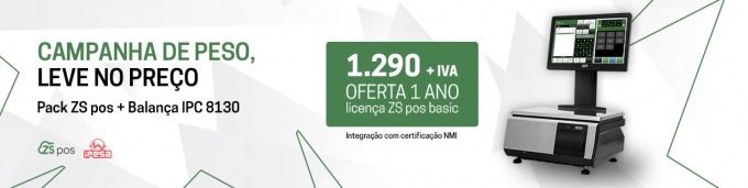 Pack ZS pos basic + Balança IPESA IPC 8130 por 1.290 € + iva